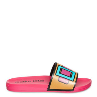 A Petite Jolie é a rainha das rasteirinhas, mas eu pessoalmente amo mesmo os slides! E essa novidade é a minha cara. Várias peças dessa coleção trazem esse desenho em 3D, dando a impressão de ter fivelas e textura. Minha primeira escolha é esse slide coloridíssimo, do jeito que eu amo!